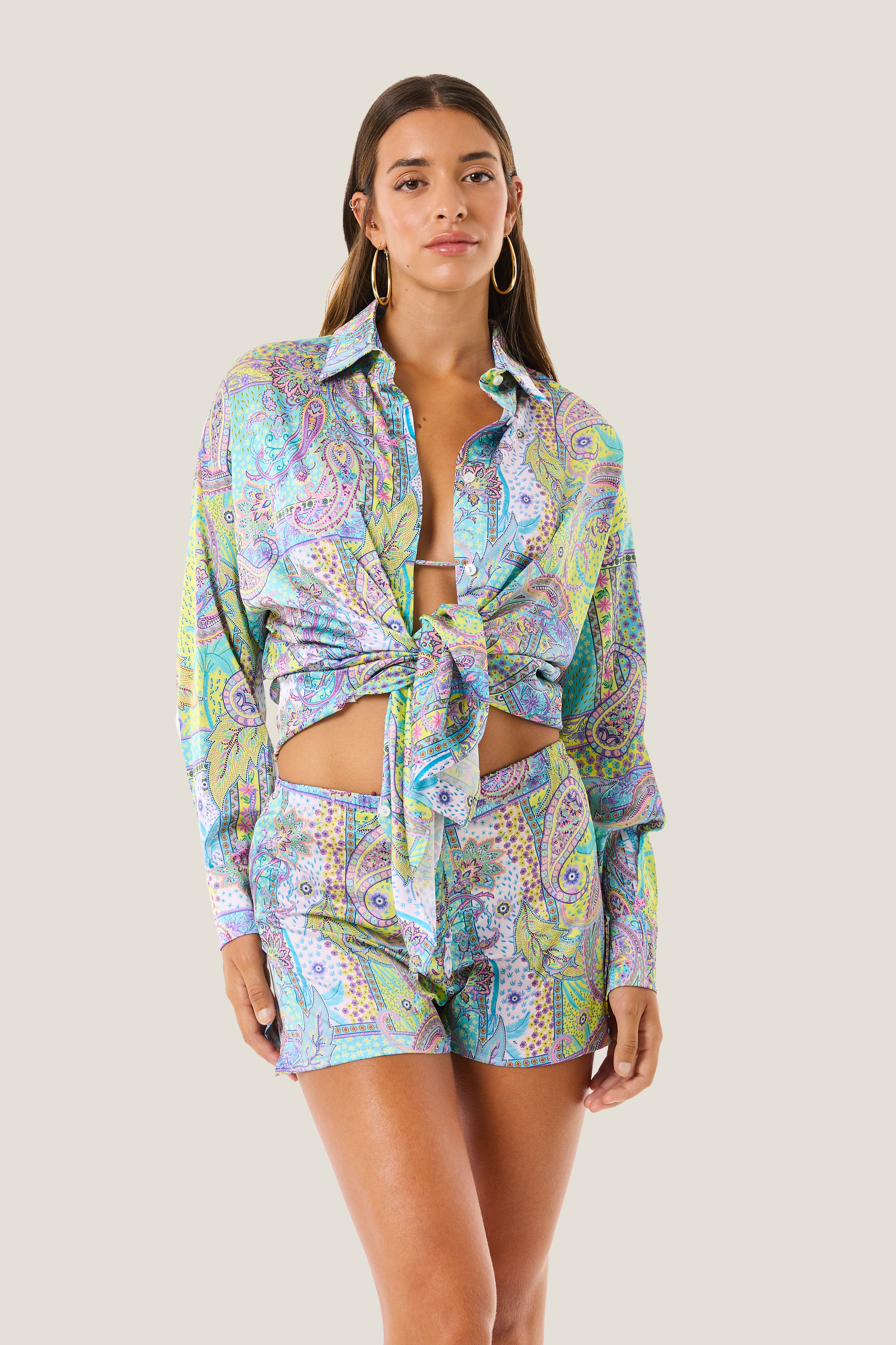 Camicia crop senza bottoni maniche lunghe