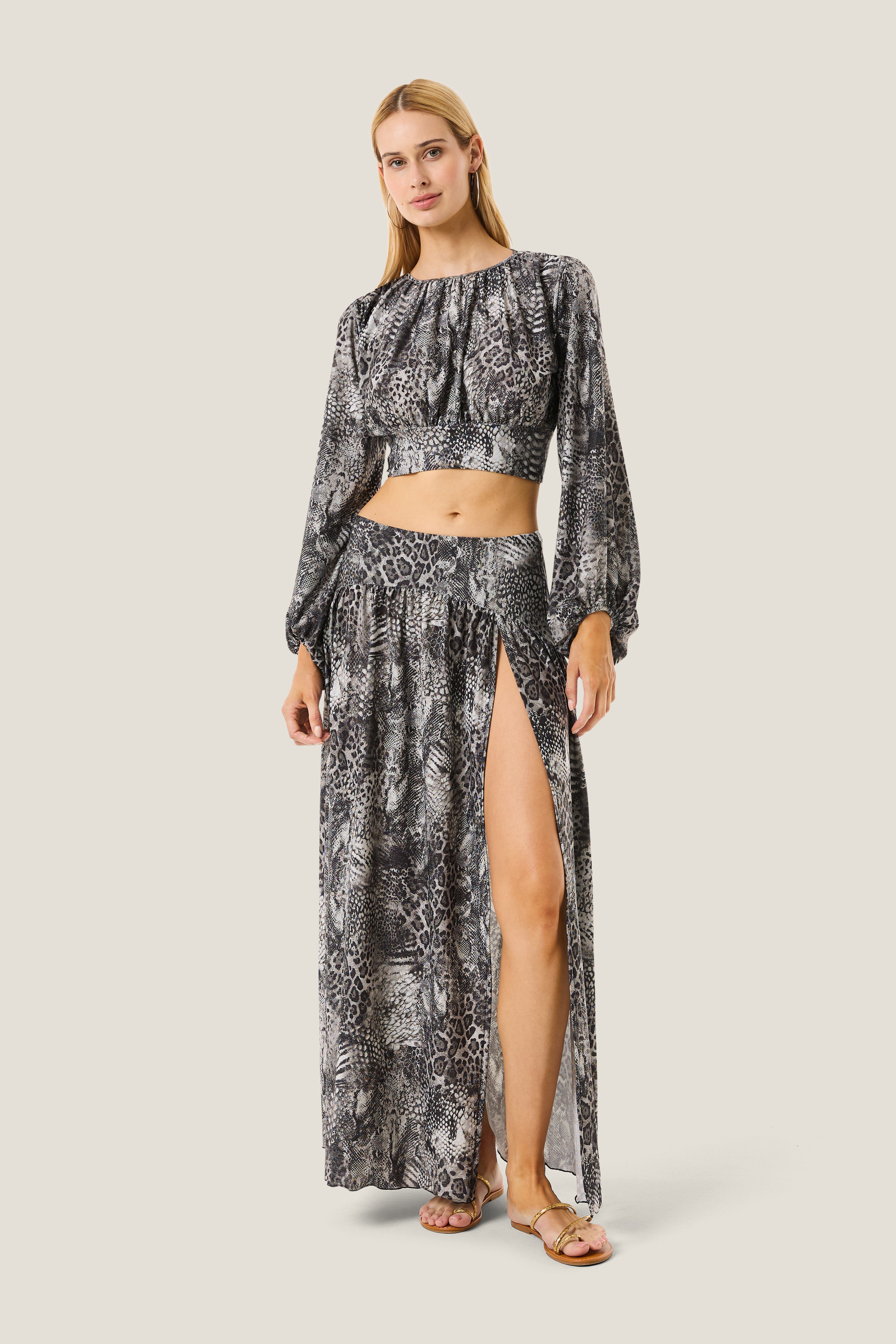 Gonna lunga spacchi animalier resort