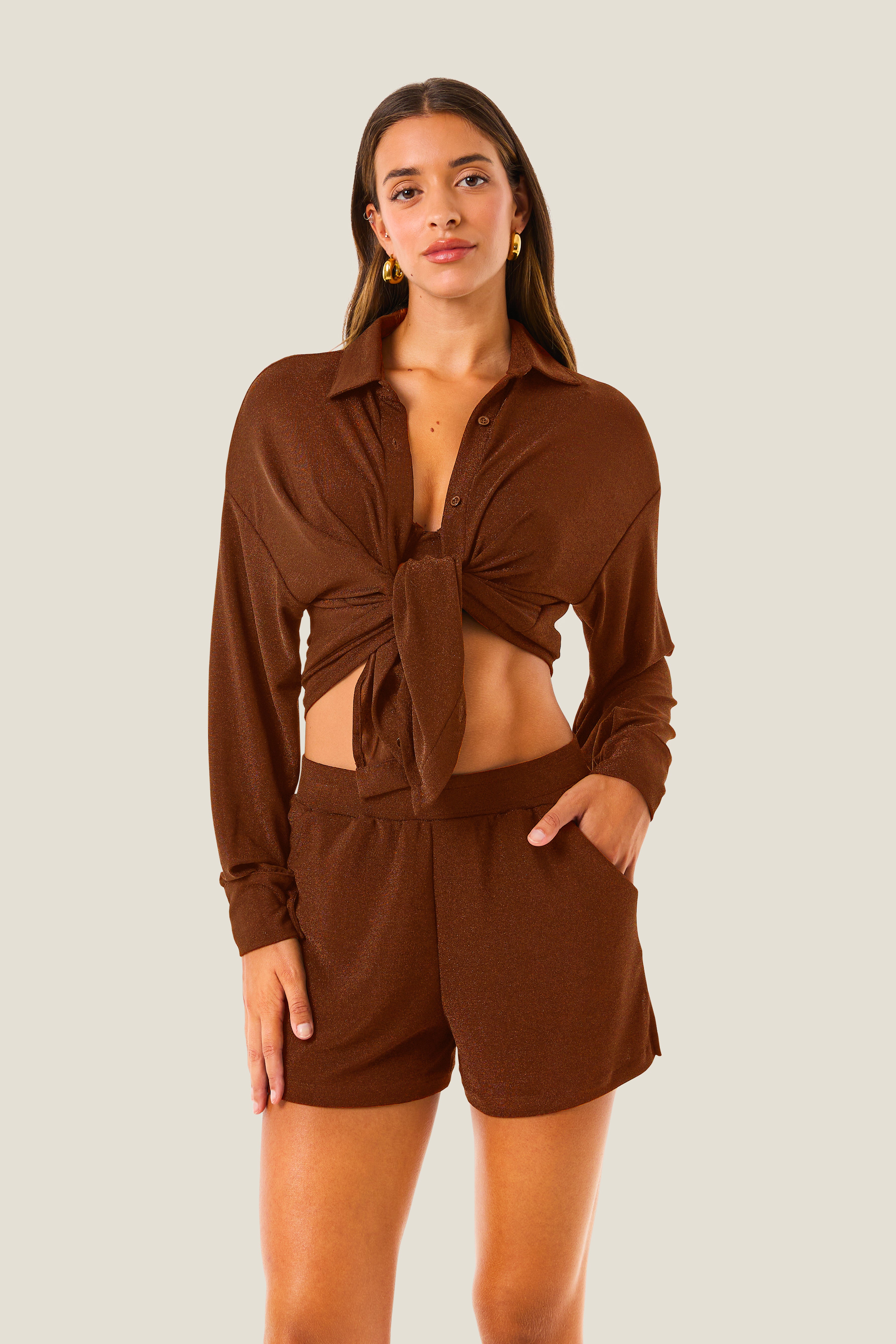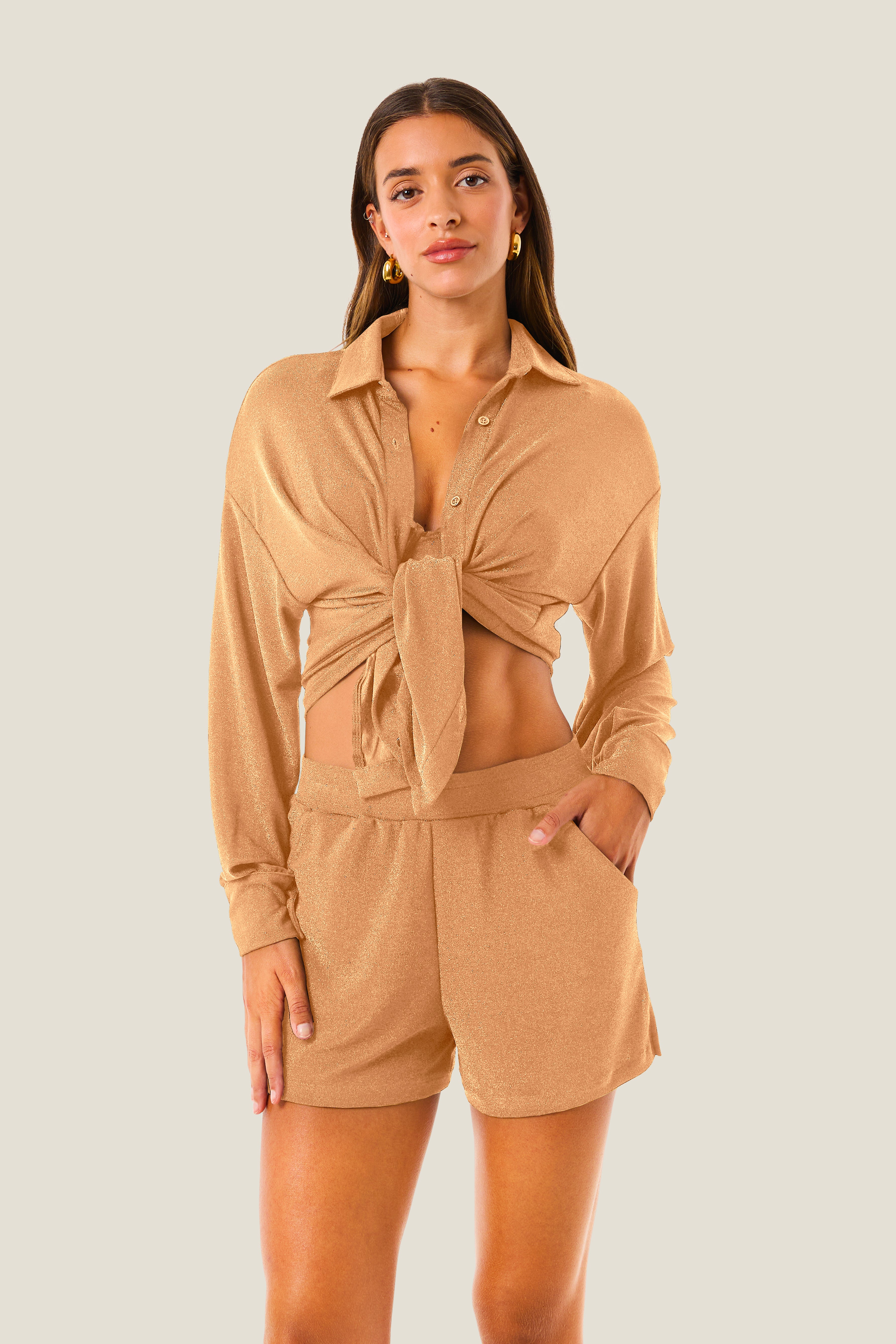 Short donna Lurex resort, dal design moderno e luminoso, pensati per valorizzare la silhouette con stile e femminilità. Realizzati in tessuto Lurex dall’effetto brillante, offrono una vestibilità comoda e leggermente avvolgente, perfetta per look da giorno o per serate eleganti in vacanza. Disponibili nelle varianti nero, oro e bronzo, sono un capo versatile e ricercato.