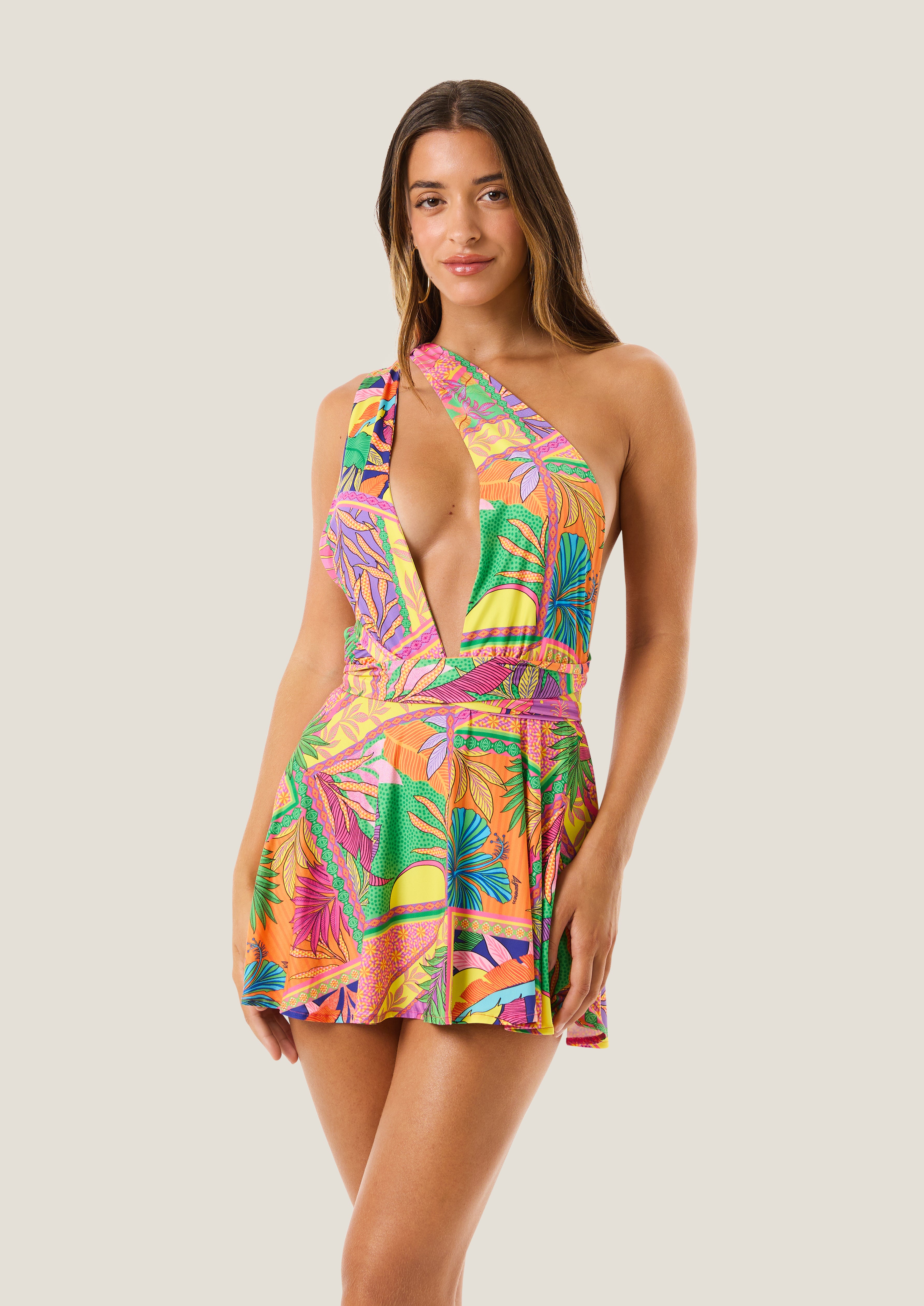 Abito corto intreccio pop foulard